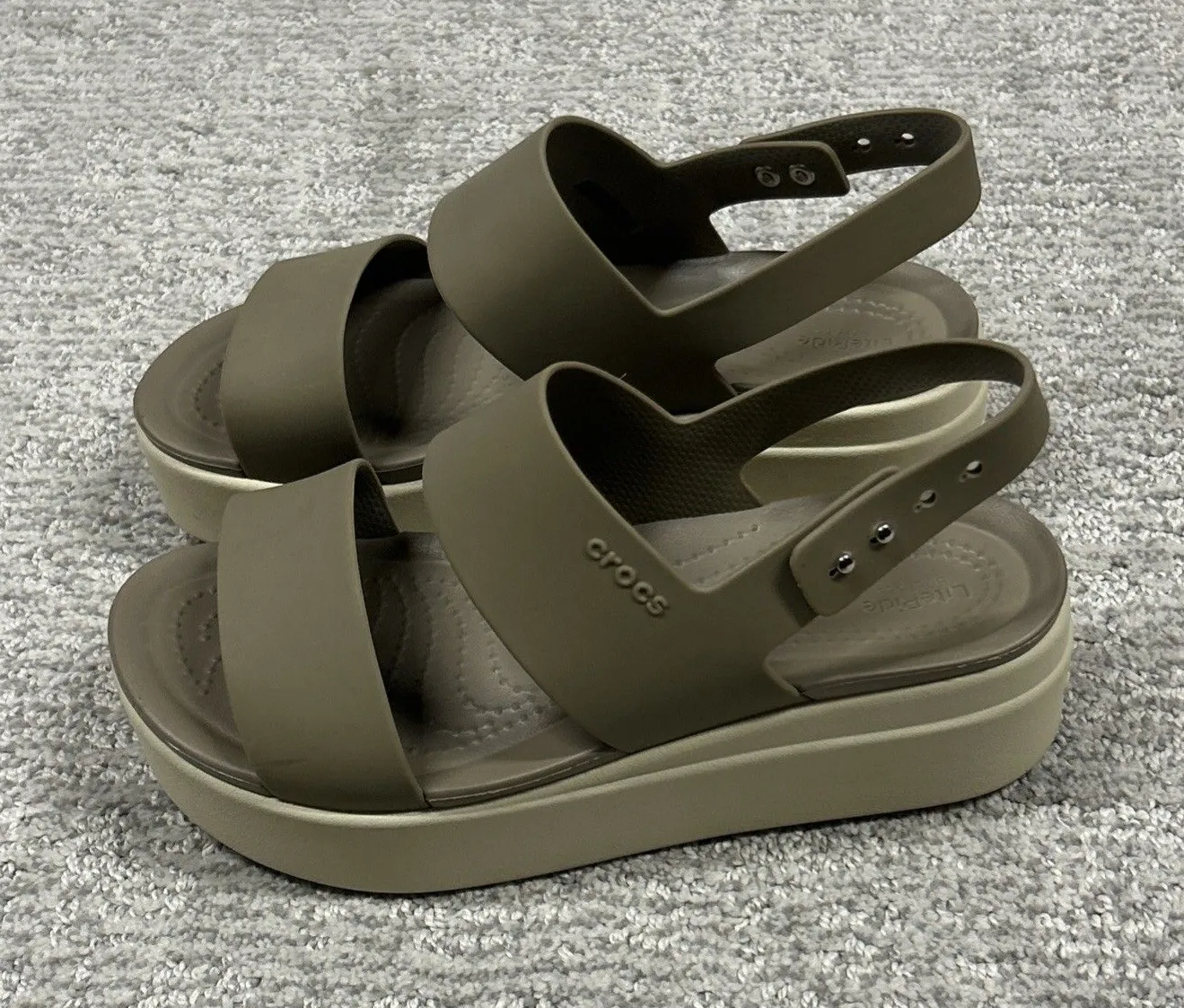 Crocs Brooklyn Low Wedge Sandals Womens 6 Beige Latte & Mushroom Tan Platform - $28 - From kelli