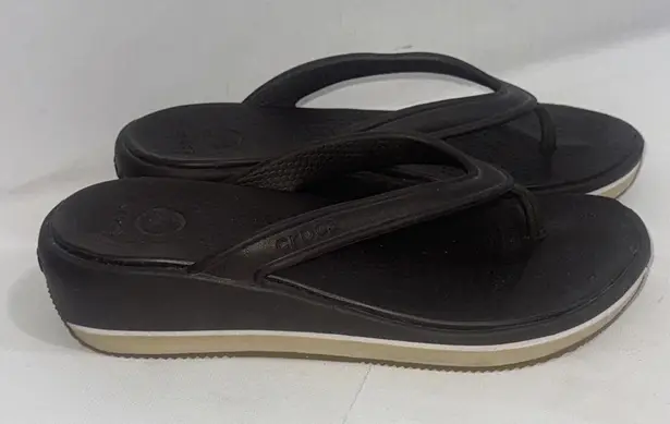 Crocs Brown & Tan Classic Platform Retro Waterproof Wedge Flip Flops in USA Women’s Size 6, in very... Show more