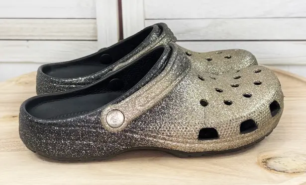 Crocs Classic Ombre Glitter Slip On Clog Sandals Black Gold Size 9 Women 7 Men Black with g... Show more