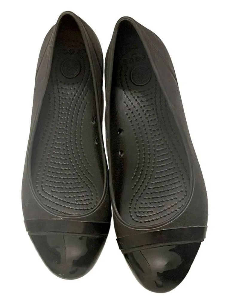 Crocs Black Patent Shiny Cap Toe Ballet Flats Slip On Confort Shoes 12300 Womens Size 8 Very Good... Show more
