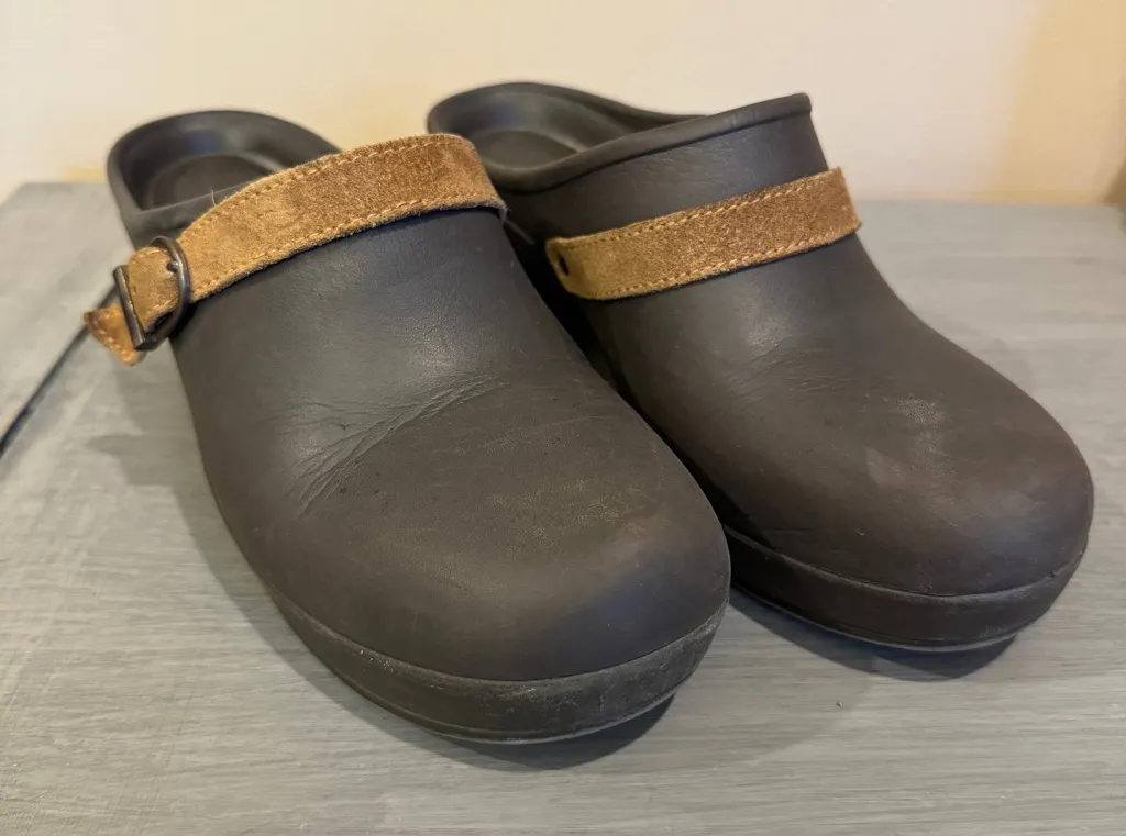 Crocs Women Sarah Clog Brown Expresso Buckle Mules size 7 Flaw See Pic.