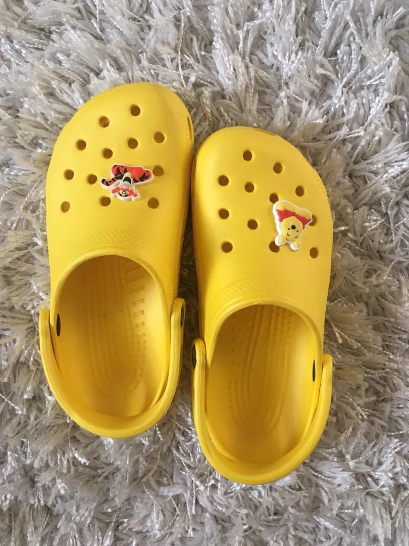 yellow unisex crocs, good condition barely worn! including two jibbitz :)
