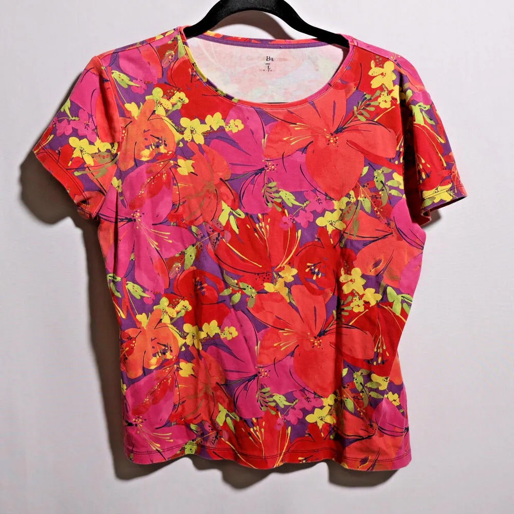 AOP Flowers Retro 90s Y2K Cotton Tee Shirt Floral Womens L Groovy Short Sleeve all over print t shir... Show more