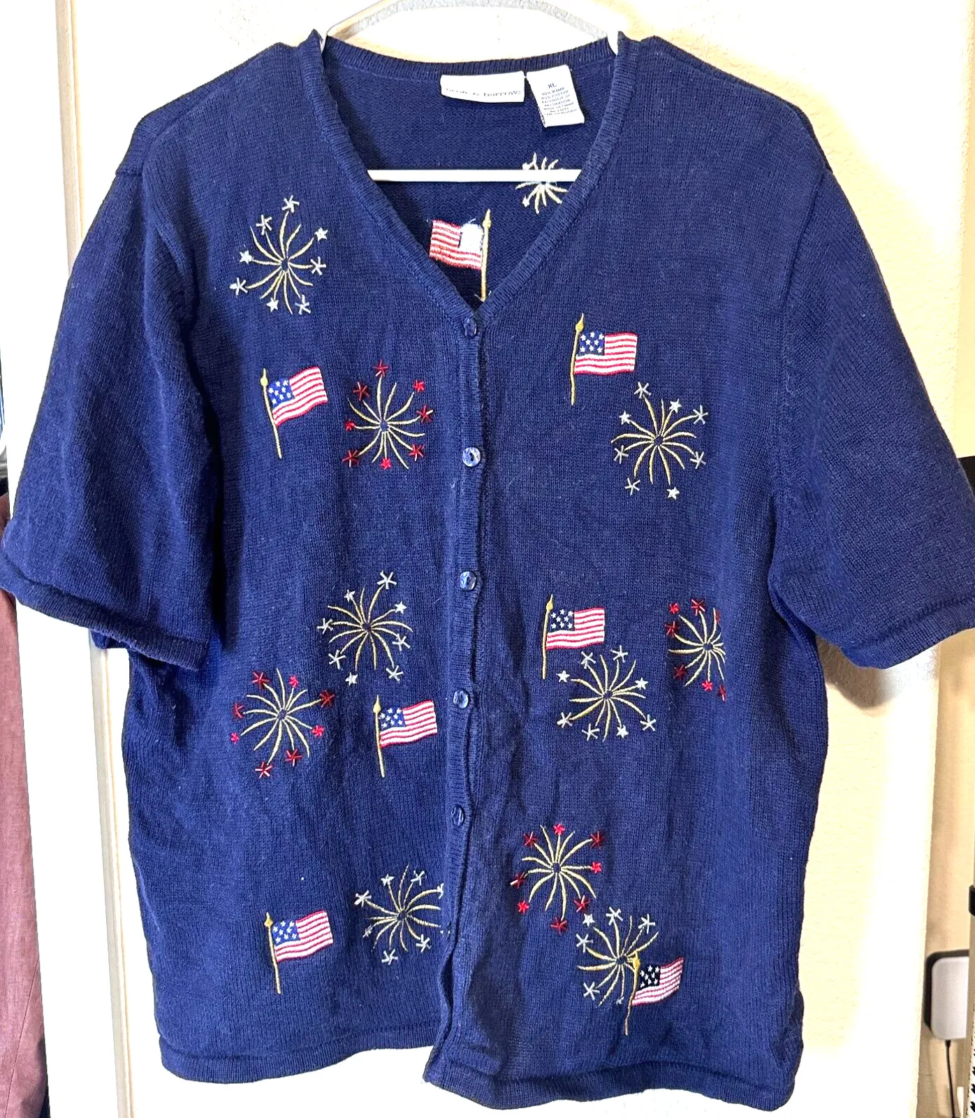 Croft & Barrow Cardigan Sweater Fireworks Flags Embroidered and beaded Patriotic 4th of July USA Mem... Show more