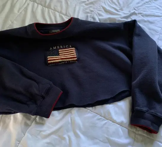 Croft & Barrow Cropped America Crewneck Blue Size XL - $10 - From Claire