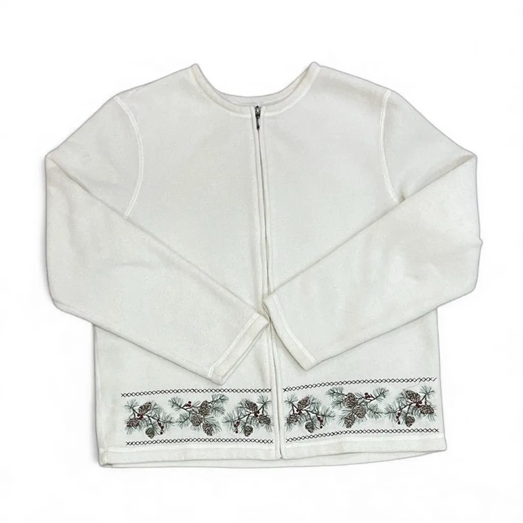 Croft & Barrow Ivory Full Zip Fleece With Pine Cone Embroidery Size XL 6 clusters of pine tree branc... Show more