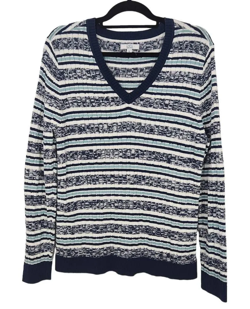 Croft & Barrow striped long-sleeve pullover sweater. Make me an offer! Neckline: V-neck Sleeve leng... Show more
