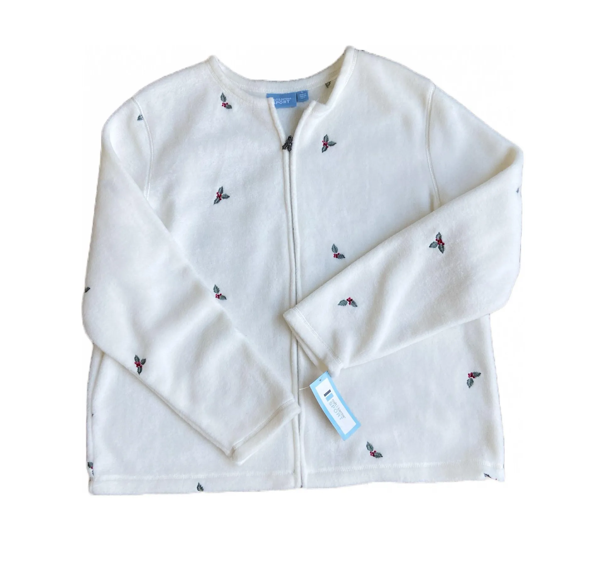 NWT Vintage Y2K Christmas Themed Holly Zip Up Fleece Jacket 🔥 White Size L - $28 New With Tags - From goodfornow