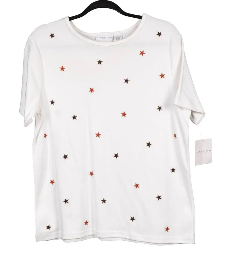 Croft & Barrow Patriotic Shirt M Womens White Embroidered Stars Cotton July 4th Size M - $18 New With Tags - From Megan