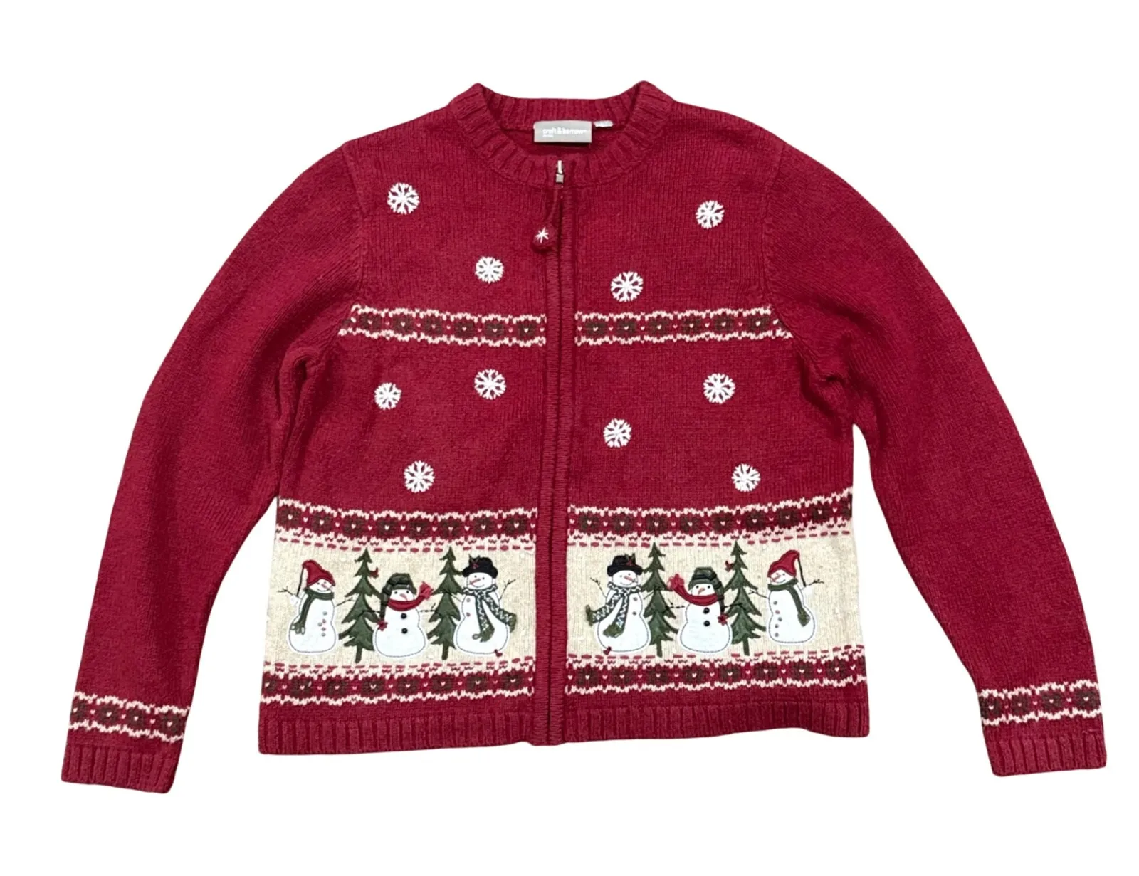Craft & Barrow Petite Winter Snowman Snowflake Zip Up Cardigan Sweater Women Petite Medium Fabric... Show more