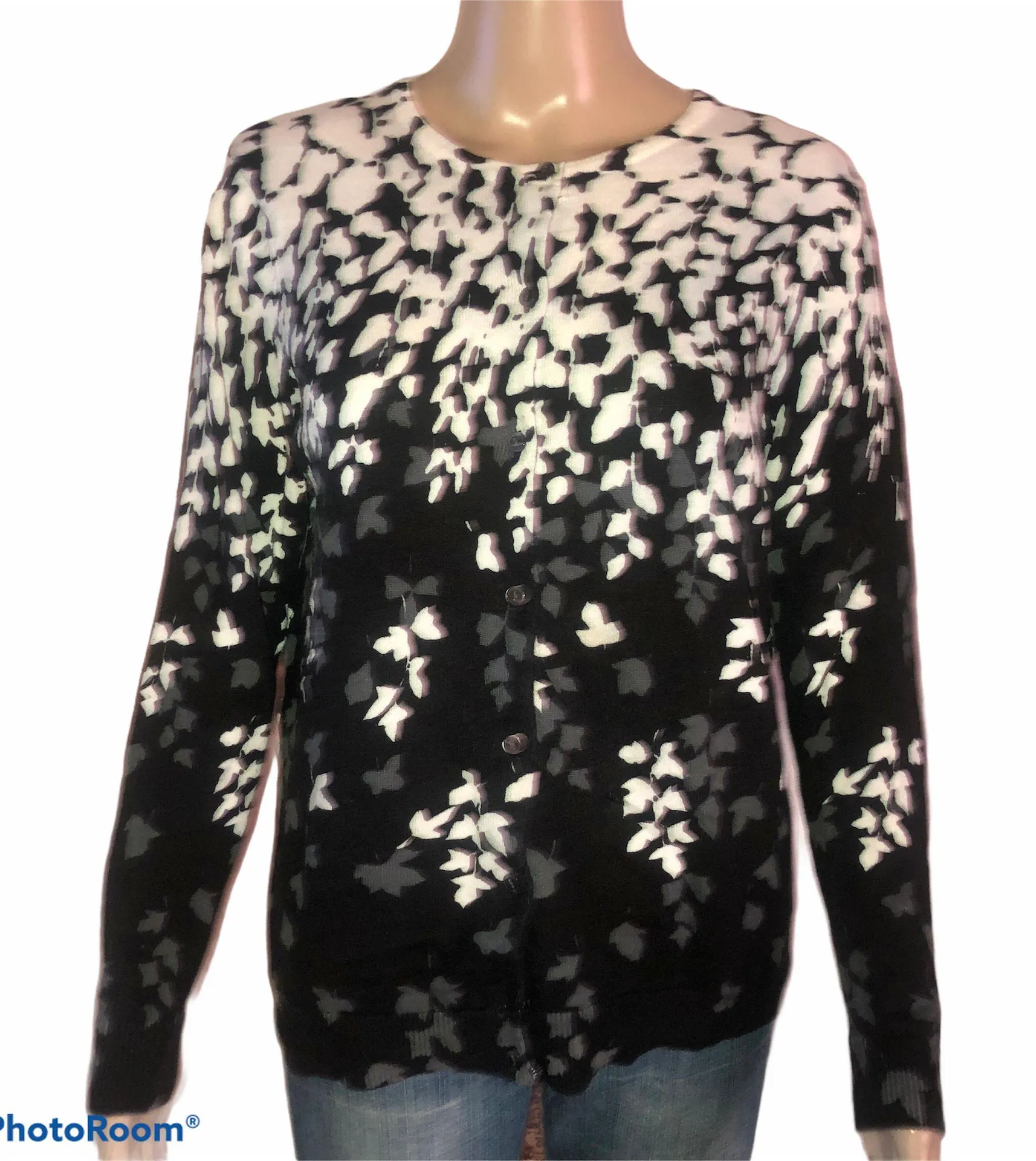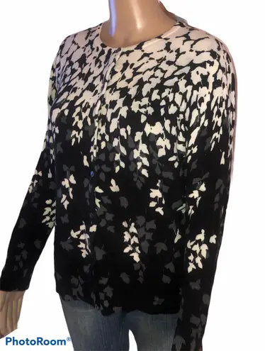 Like new condition. Black, white and gray patterned print. Buttoned front. Long sleeves. 21” pit to... Show more