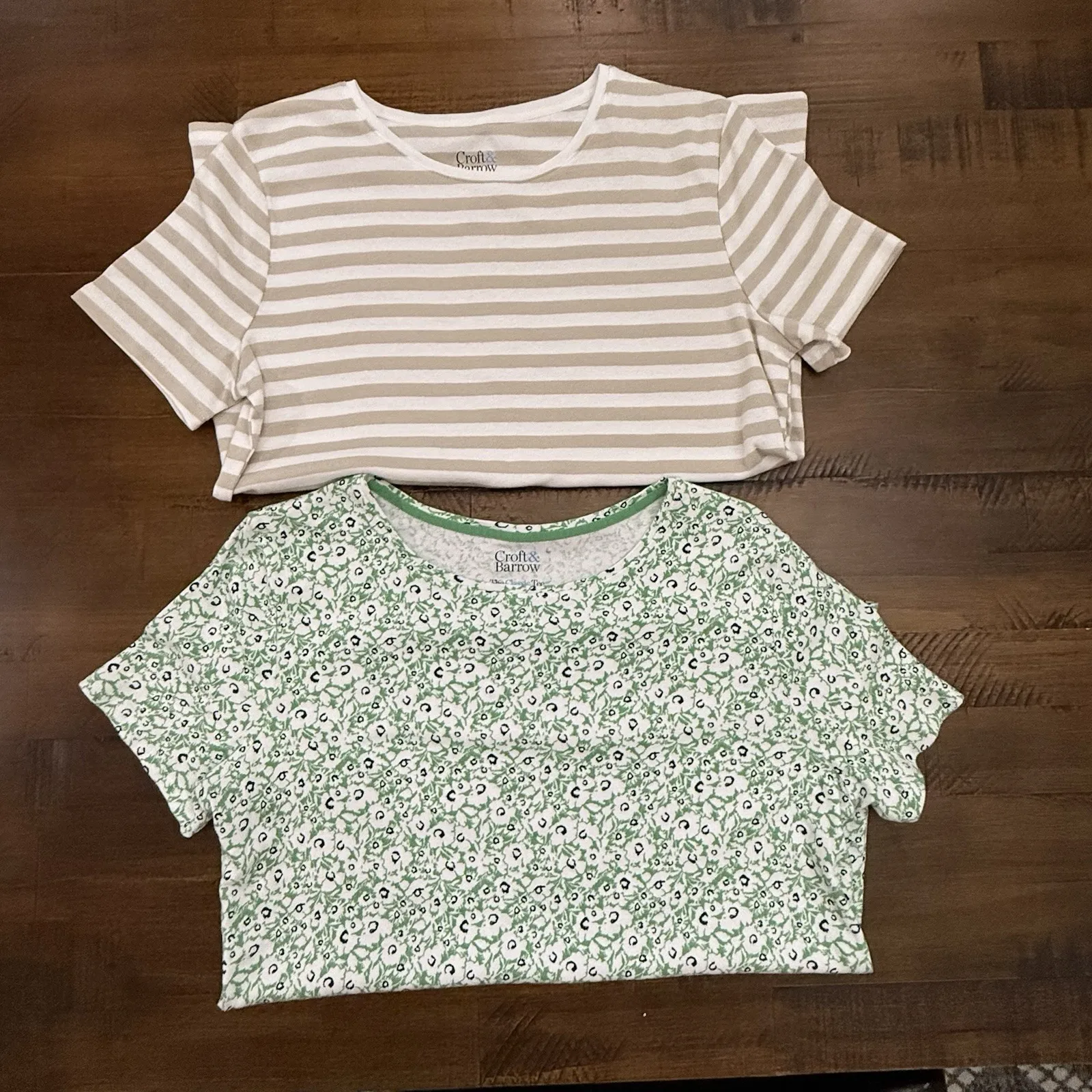 This Croft & Barrow set of 2 tops in women's size medium features a crew neckline, short sleeves, an... Show more