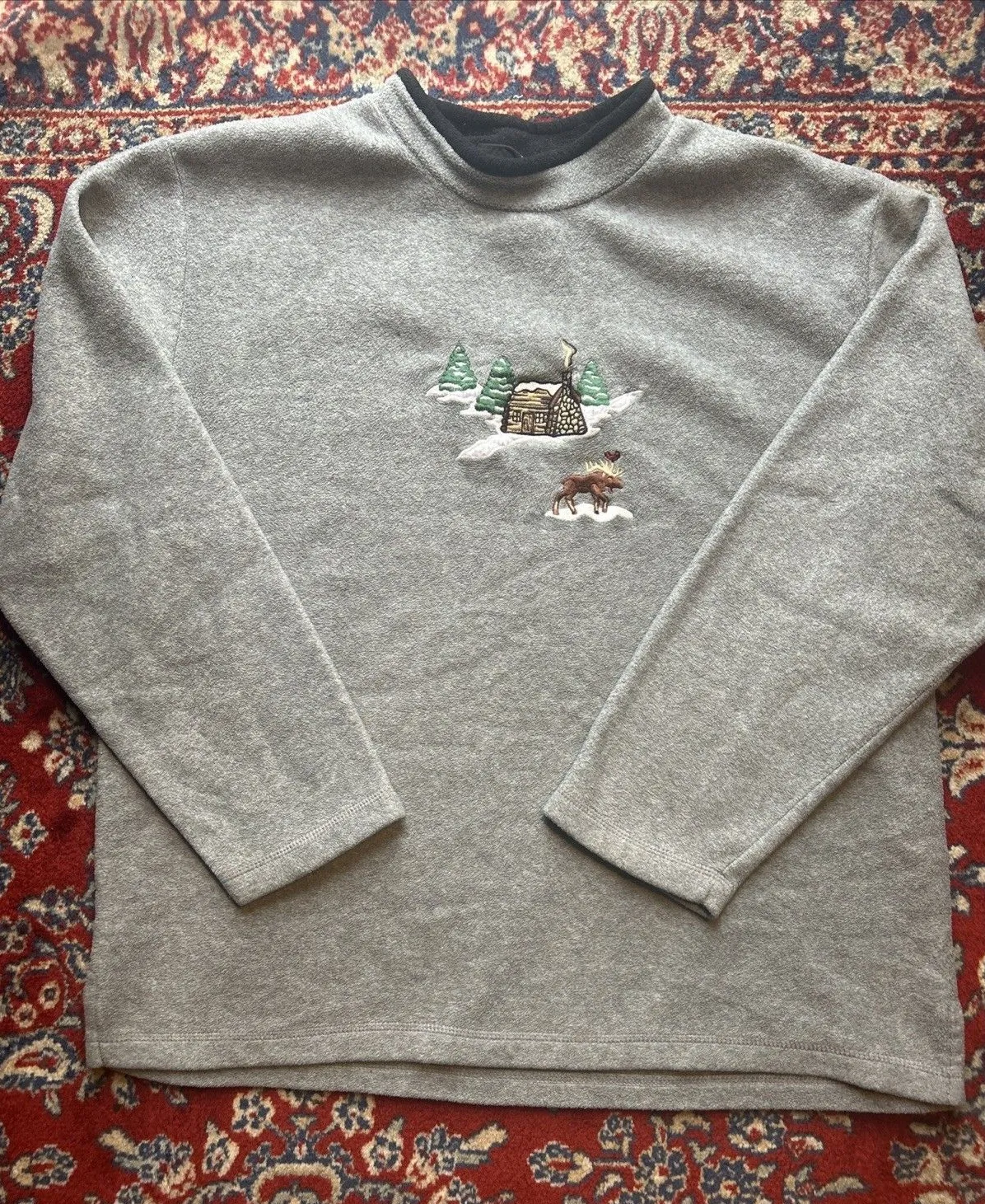 Croft & Barrow Sport Women's Fleece Sweatshirt Moose By Cabin Appliqué Design L Size L - $20 - From thriftay