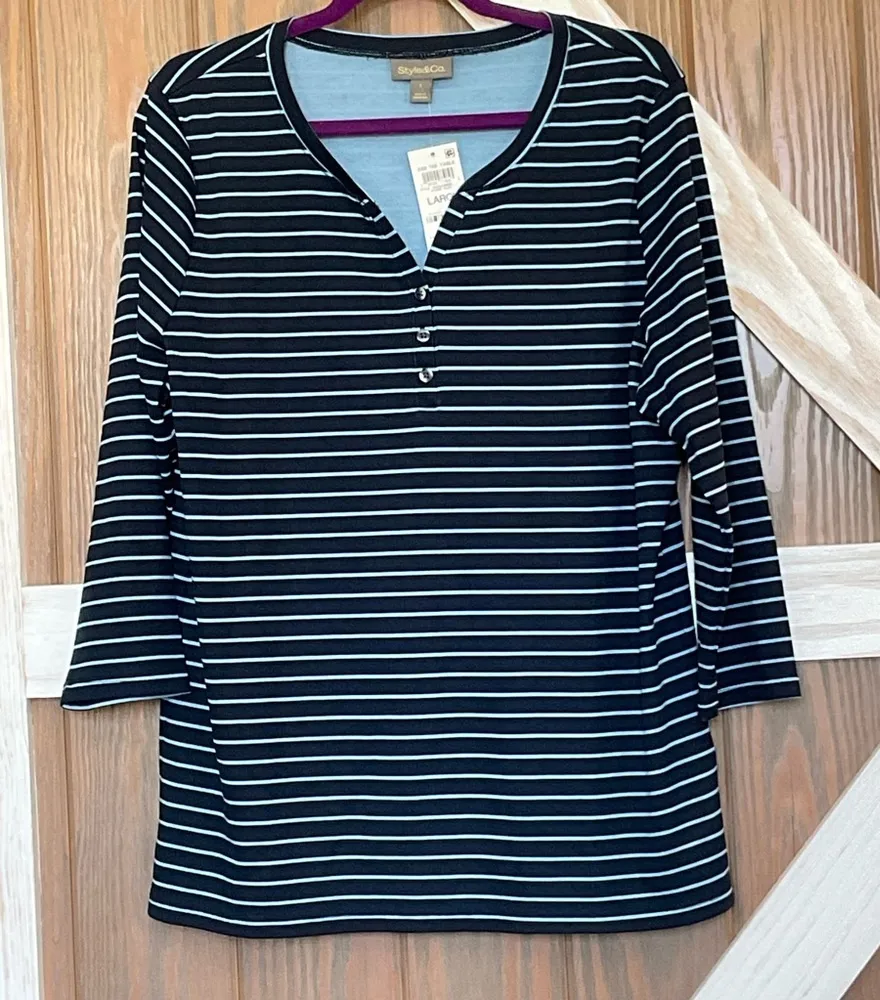 Stylish black and white striped top for women. Perfect for casual outings. Comfortable and chic desi... Show more