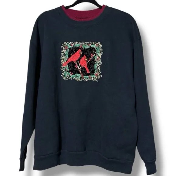 Vintage XL C&B sport embroidered Christmas holly cardinal long sleeve sweater Black - $28 - From Melissa
