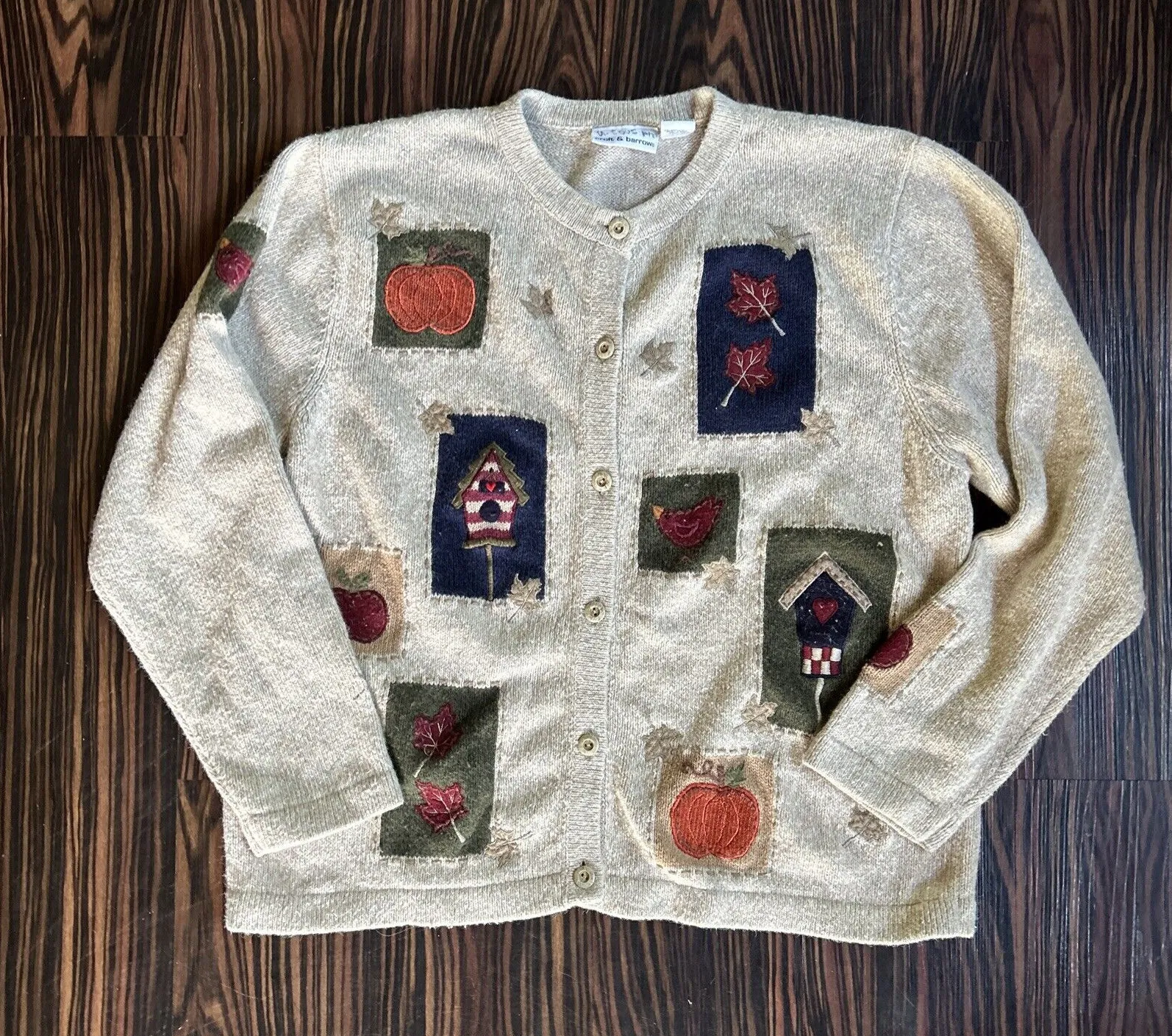 Croft & Barrow Woman Size L Angora Wool Sweater Cardigan Fall Autumn Applique Size L - $38 - From thriftay
