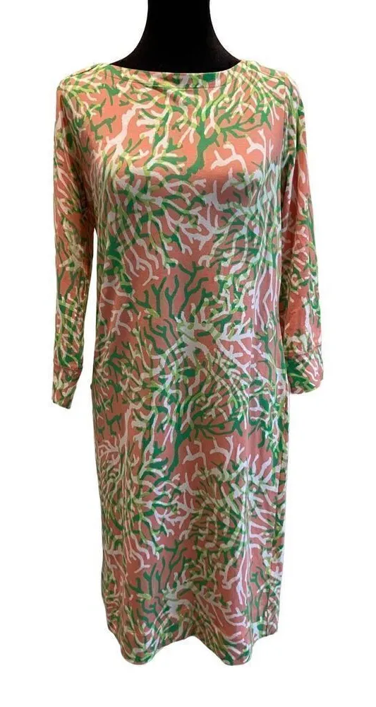 Crown & Ivy Beach Long Sleeve Pink/Coral and Green XS Mini Dress Machine Wash Cold / Tumble Dry Low... Show more