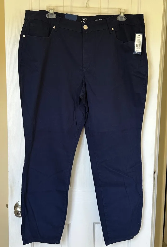 Stylish navy denim jeans. Perfect for any season. These are Crown & Ivy brand and are new with tags.... Show more