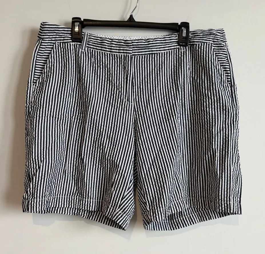 Crown and Ivy Women's Stripe Seersucker Bermuda Shorts Blue White Size 16. 100% cotton. Good conditi... Show more