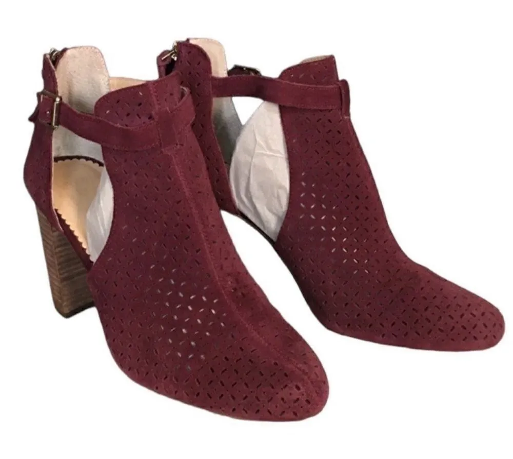 Crown Ivory Perforated Leather Burgundy Bootie, Ankle closure, Reflects minor flaw please review pho... Show more