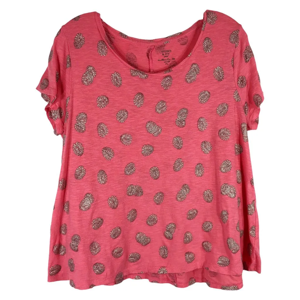 Crown Ivy Petite Large Top Pink Sparkly Monstera Leaf Print Short Sleeve 1354 Chest: 22" across Len... Show more
