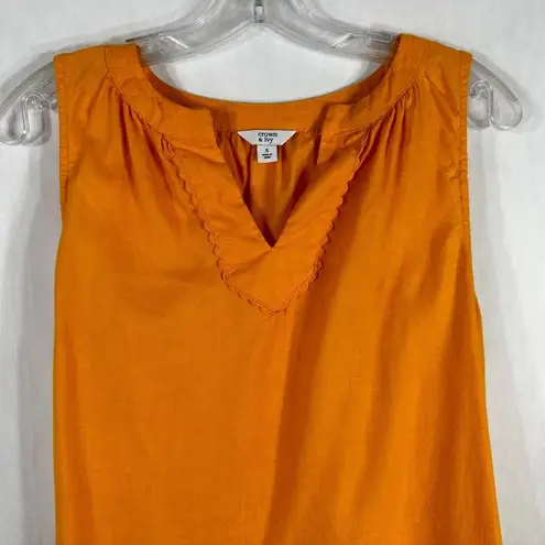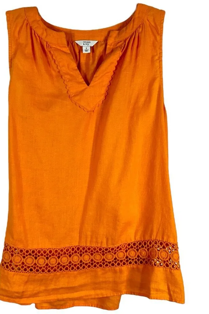 Crown Ivy Small Top Gold Orange Linen Sleeveless Crochet V Neck Sleeveless 320 Chest: 19" across Le... Show more