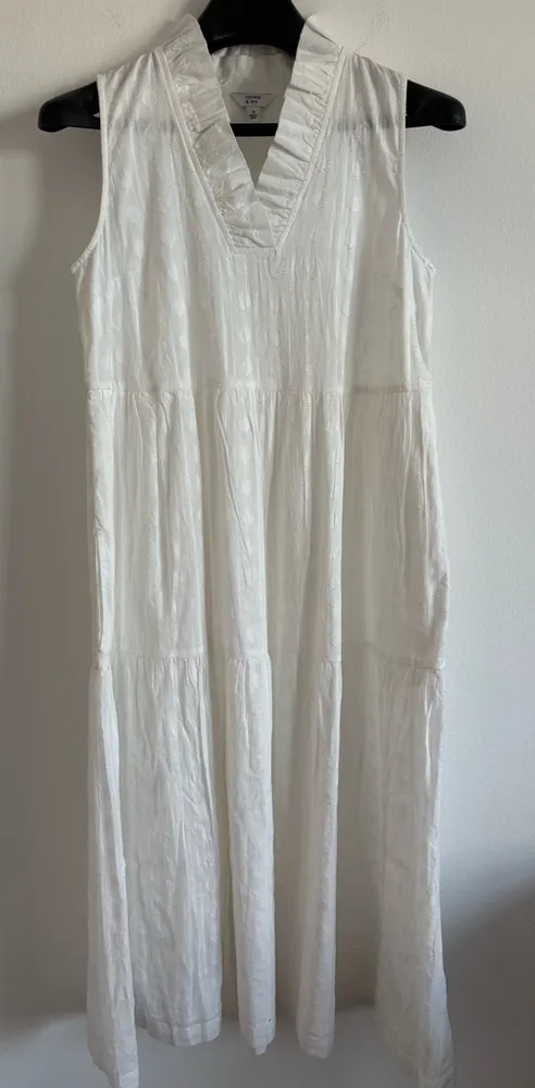 - Crown & Ivy - Size Small - Embroidered - Lined - Ruffle Neckline - White - Excellent Used Conditi... Show more