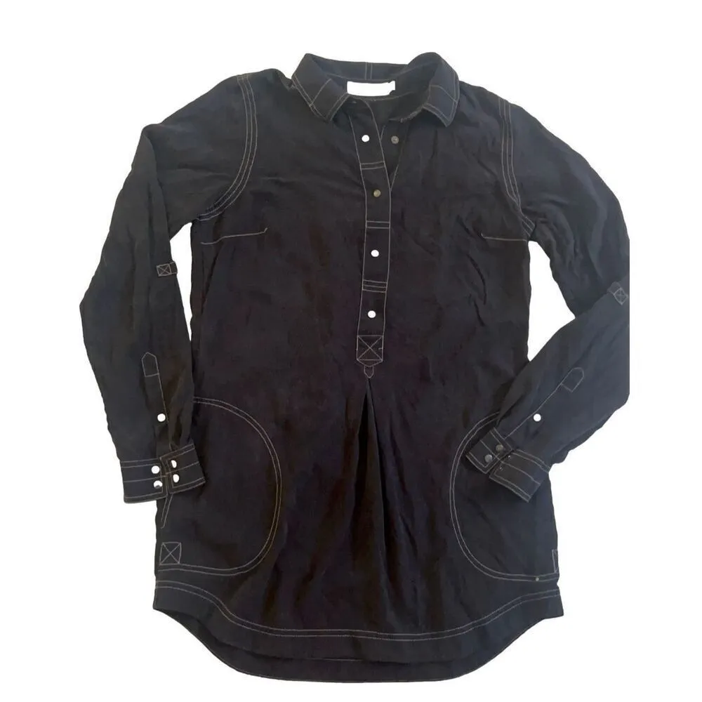 Go by Go Silk Long Sleeve Tunic Popover Blouse Gray Snap Closure Pockets Size small 100% Silk Tab S... Show more