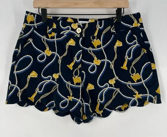 Crown & Ivy Nautical Rope Print Scalloped Hem High Rise Shelby Shorts Size: 10 Nautical Rope and c... Show more