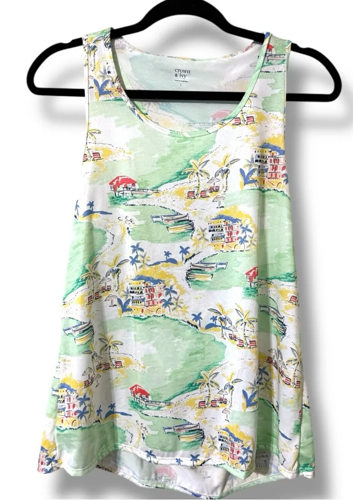 Crown & Ivy size large cross back racer tank scallop edged summer travel new White - $25 New With Tags - From Melissa