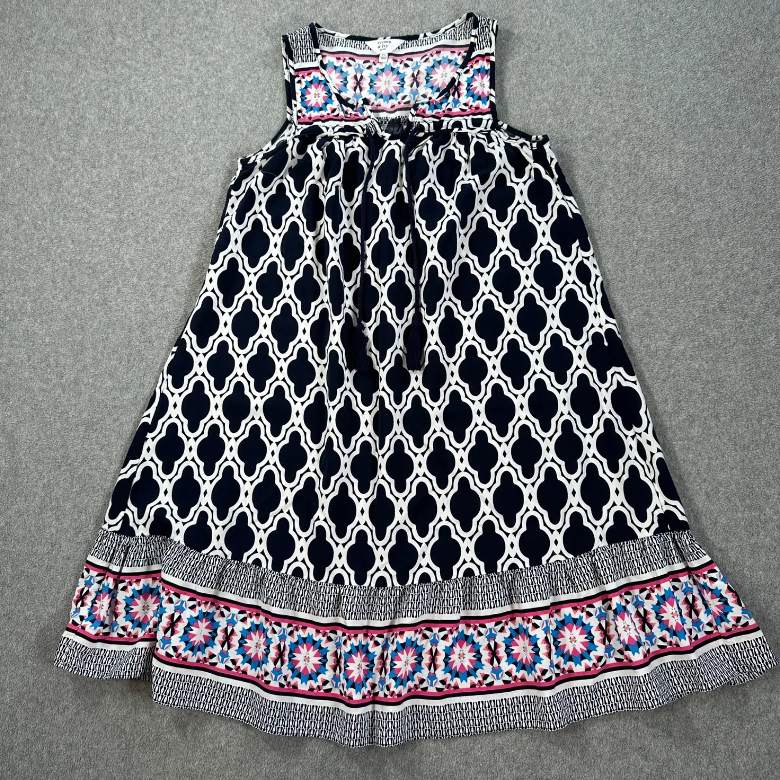Crown & Ivy Sleeveless Sun Dress Women's PXS Navy Blue Tassel Flowy Summer Shift Size: PP - PXS Co... Show more