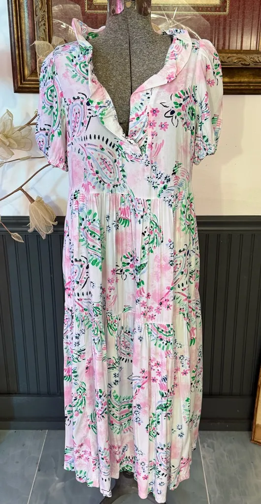 Gorgeous and feminine Crown & Ivy dress featuring a dreamy watercolor-inspired floral print in soft... Show more