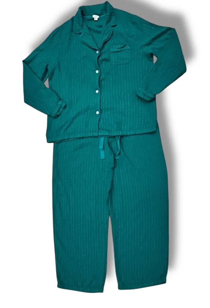 Thin soft flannel. Crown & Ivy Women’s Pajama Set Size Large Green with Silver Stripes Cotton Prep... Show more