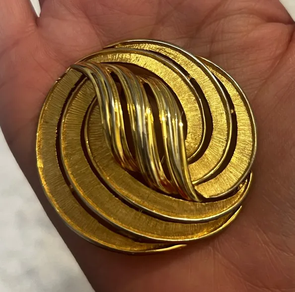 Crown Trifari Swirl Ribbon Feather Abstract Round Gold tone Vintage Brooch Pin - $35 - From emily