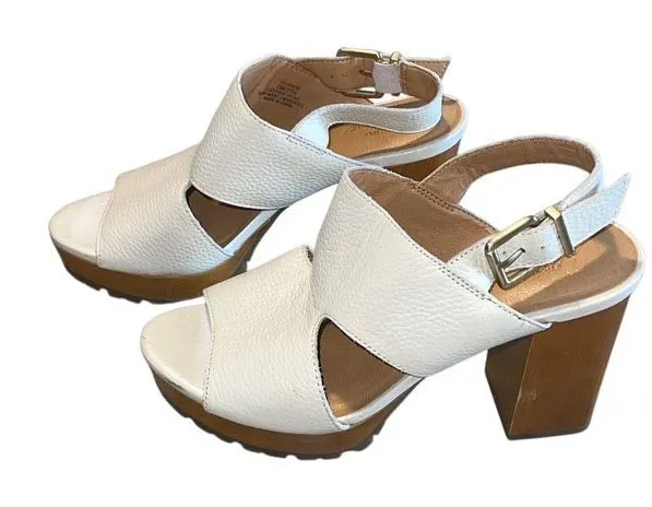 Crown Vintage Womens Pebbled Leather Wooden Block Heel Platform Sandals White Size 7 Features: Bran... Show more