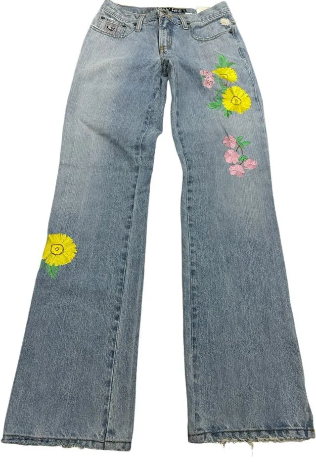Cruel Girl Blue Low Rise Vintage Slim Fit Bootcut Jeans with Floral Embroidery Size undefined - $38 - From Faith