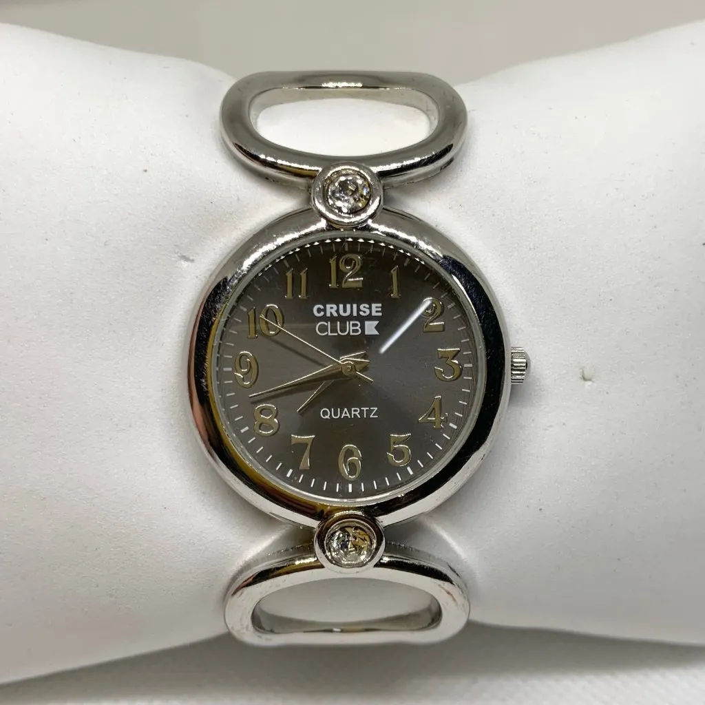 Cruise club Quartz women’s watch silver tone 30mm round cuff band running - $15 - From Watch