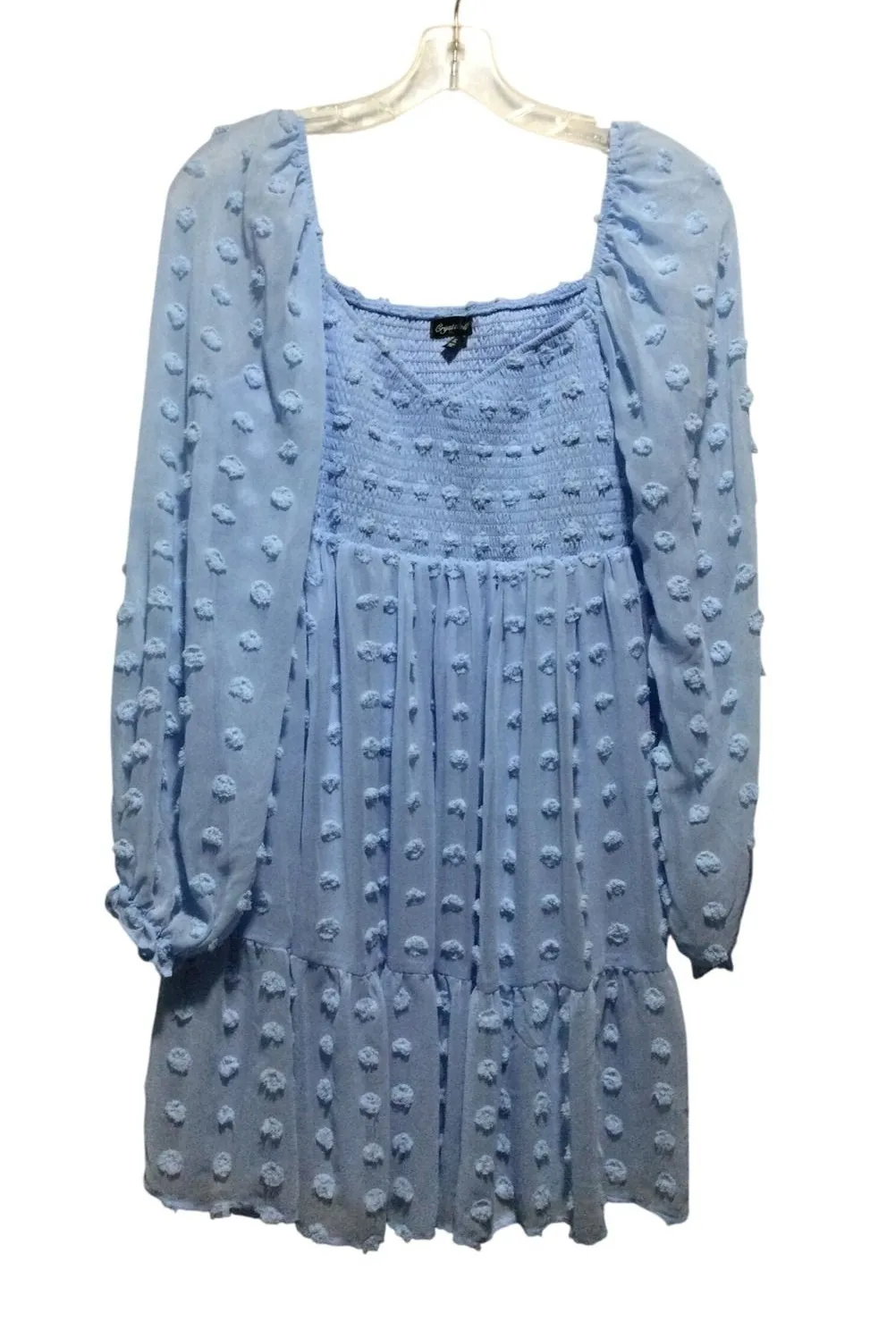 Float through your day in this enchanting Crystal Doll mini dress. The airy blue fabric is adorned with playful textured polka dots, creating a whimsical texture that catches the light. A flattering square neckline draws the eye upward, while the smocked bodice cinches your figure for a comfortable and stylish fit. Full puff sleeves with elasticized cuffs add a touch of romantic volume, leading to a tiered, flouncy skirt that promises effortless movement. Perfect for a garden party, a casual brunch with friends, or a romantic picnic. Measurements: • Bust: 15 in • Length: 33 in • Waist: 13 in • Sleeve Length: 23 in Style: A-Line, Sundress, Trapeze & Swing Dress Length: Mini Department: Women Sleeve Length: Long Sleeve Pattern: Geometric Occasion: Casual, Party/Cocktail Material: Polyester Blend Fabric Type: Chiffon Theme: Flower Neckline: Square Neck Season: Spring, Summer Sleeve Type: Balloon Sleeve Closure: Pullover Keywords: smocked dress, puff sleeve dress, square neck dress, textured dress, light blue dress, mini dress, boho dress, fairy dress, cute dress, summer dress, spring dress, party dress, casual dress, day dress