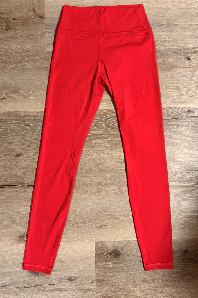 Crz Yoga Double Waist Seam High Waisted Yoga Workout Legging Red - $20 - From Courtney