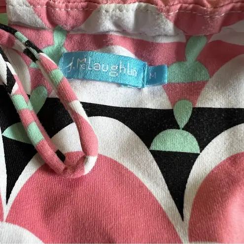 Vibrant and easy to wear, this J. McLaughlin “Maria” dress features a retro-inspired geometric scallop print in shades of coral pink, mint green, black, and white. Crafted in J. McLaughlin’s signature Catalina Cloth® for a flattering fit with the perfect amount of stretch. Built-in shelf bra adds comfort and support. Halter neckline with slim straps and a relaxed sheath silhouette make this dress a go-to for warm-weather occasions. • Size Medium • Catalina Cloth® fabric – stretchy, comfortable, and travel-friendly • Pink, green, black, and white geometric scallop print • Halter neckline with thin straps • Built-in shelf bra • Excellent preloved condition – no flaws Perfect for: resort vacations, cruises, brunch dates, summer parties, casual weddings, or everyday wear. summer halter dress, Catalina Cloth dress, vacation dress, J. McLaughlin dress, pink print dress, travel-friendly dress, cruise wear, sleeveless dress, retro print dress, scallop print dress, easy care