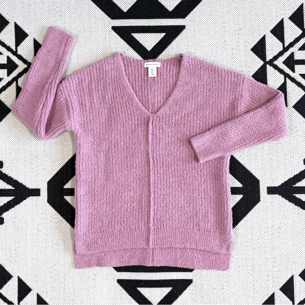 Cupcakes & Cashmere Soft & Cozy Plush V-Neck Sweater in Mauve Pink in excellent condition, no flaws.... Show more