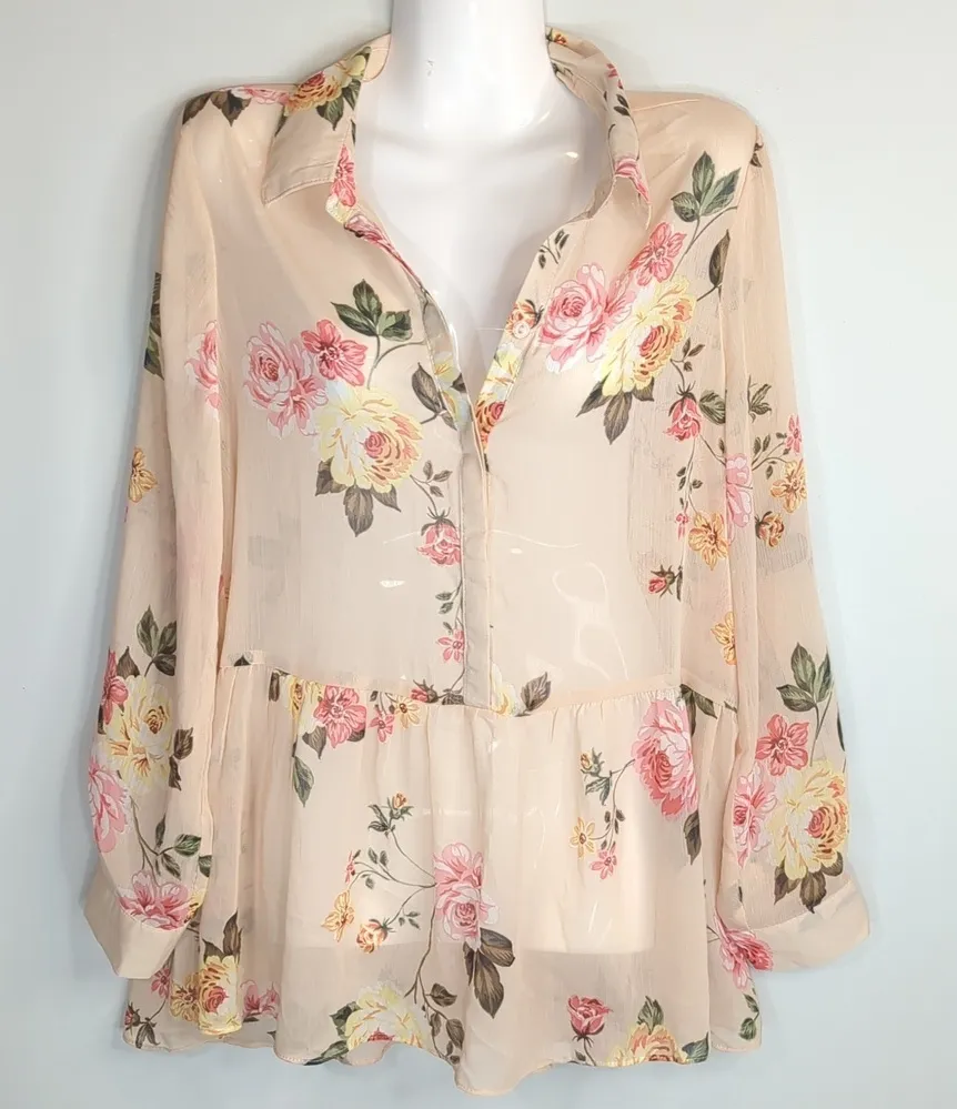 NWT Cupio Coral Floral Roll Tab Peplum Blouse Casual Career Size S New with tags Floral Print Col... Show more