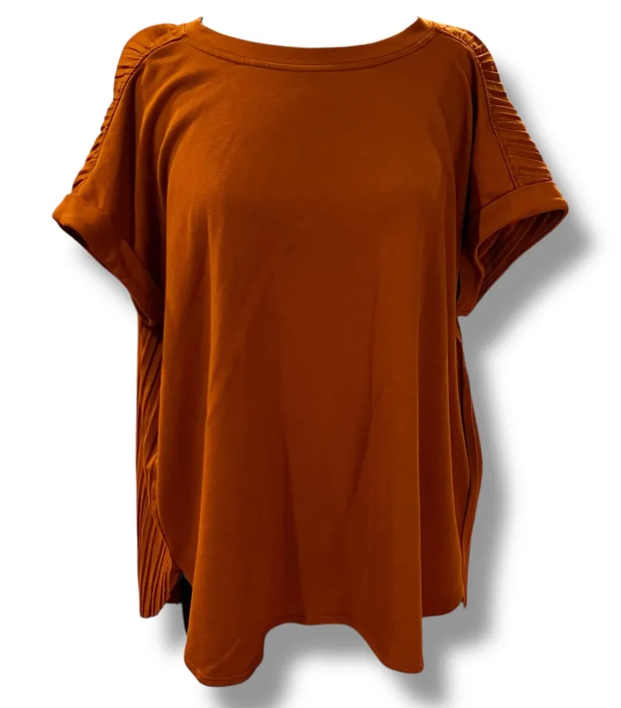 Condition: vibrant color, no visible flaws, slight piling Relaxed fit Soft lightweight fabric, with rolled cuffs on short sleeves Color: Carnelian orange/terracotta shade, rust Size: XL (Womens) Tag: Cupio Approximate flat measurements: see photos *colors may vary due to lighting or viewing devices *we will ship FAST and with care