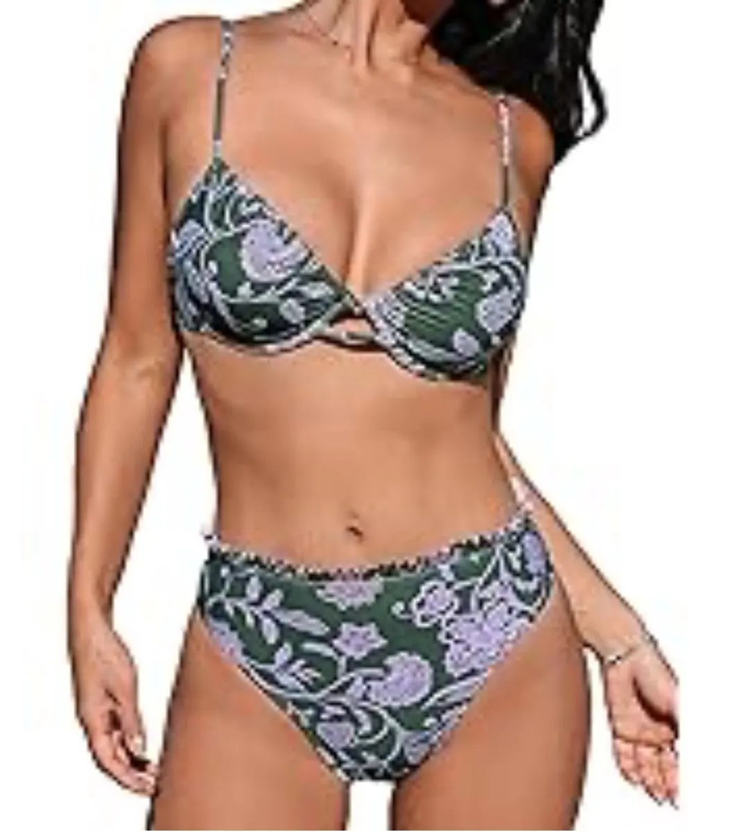 Stylish floral bikini set, perfect for making a statement. This two-piece swimsuit features a flatte... Show more