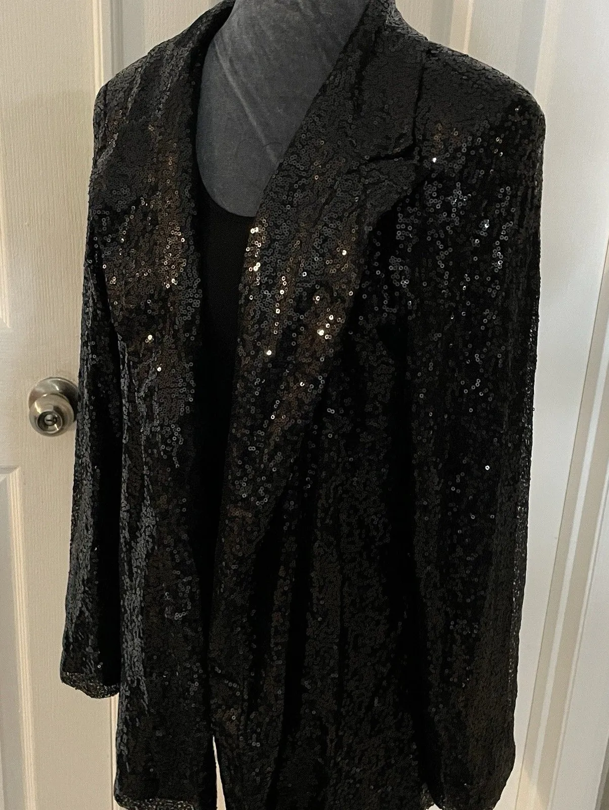 The Black Sequin Tuxedo Blazer Dress Jacket is a stylish and elegant piece from the brand Cupshe. Th... Show more