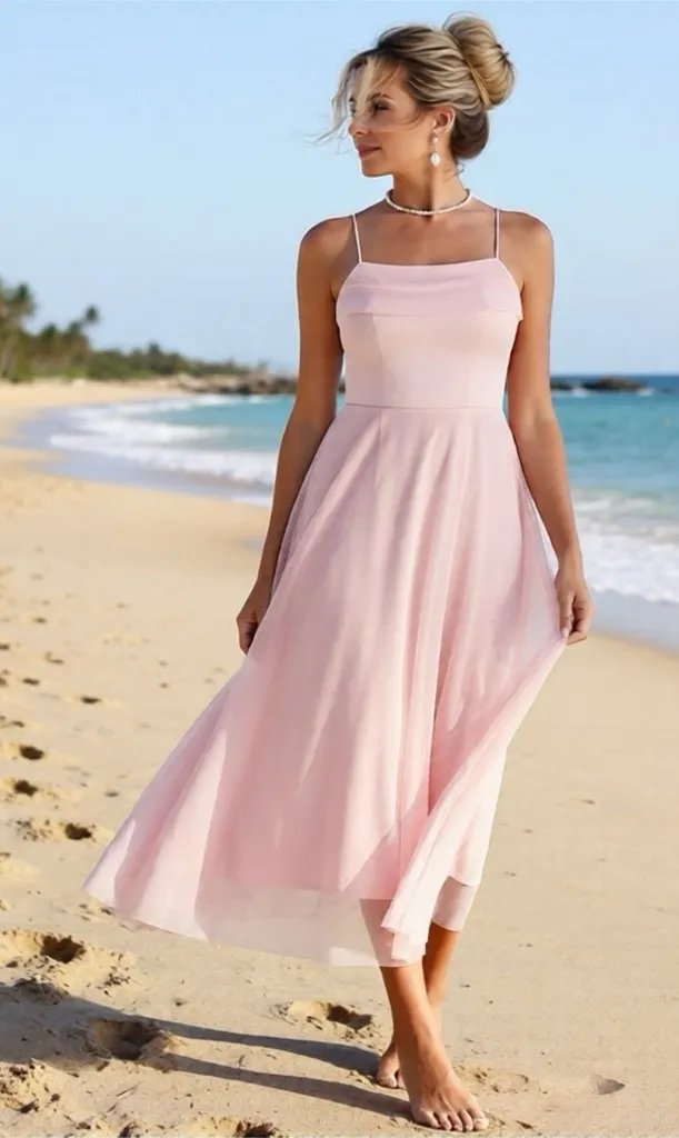 The Cupshe Madison Beach Wedding Honeymoon Tulle Tie Back Maxi Dress in Pink, size M, is a stunning... Show more