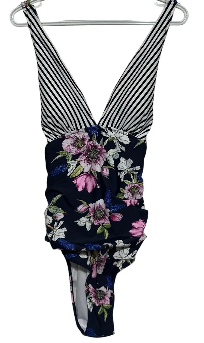 Cupshe Women's Floral Fit and Comfort 4 Way Stretch One Piece Swimsuit S Blue with Pink Cream Blue F... Show more