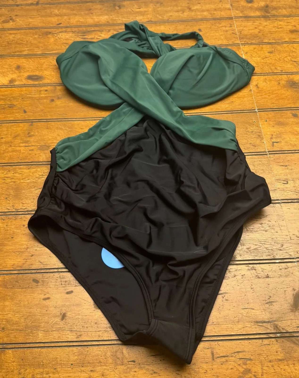 A stylish two-tone halter neck bikini set in a vibrant green and classic black. This fashionable swi... Show more