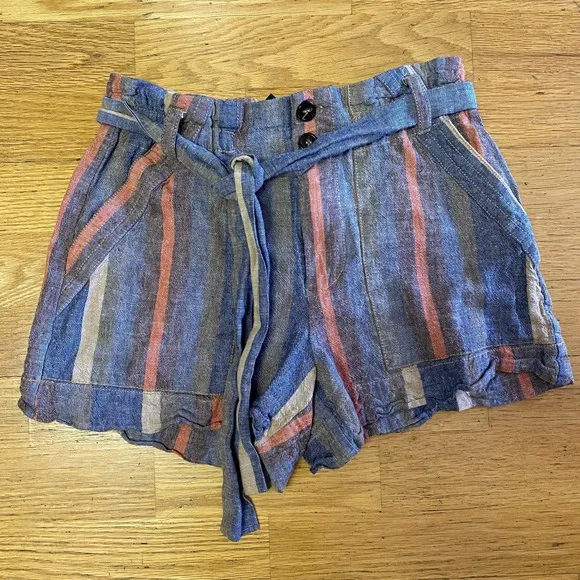 Current Air Coastal Linen Striped Granola Beach Vacation Preppy Shorts S - $11 - From Rachel