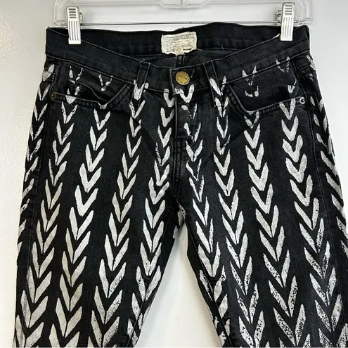 Current/Elliott THE ANKLE Skinny Rhinestone Chevron Jeans Black with white chevron print Low rise C... Show more